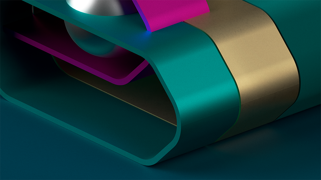 A collection of 3D renderings featuring both geometric forms and typographic elements, all crafted in aluminum.