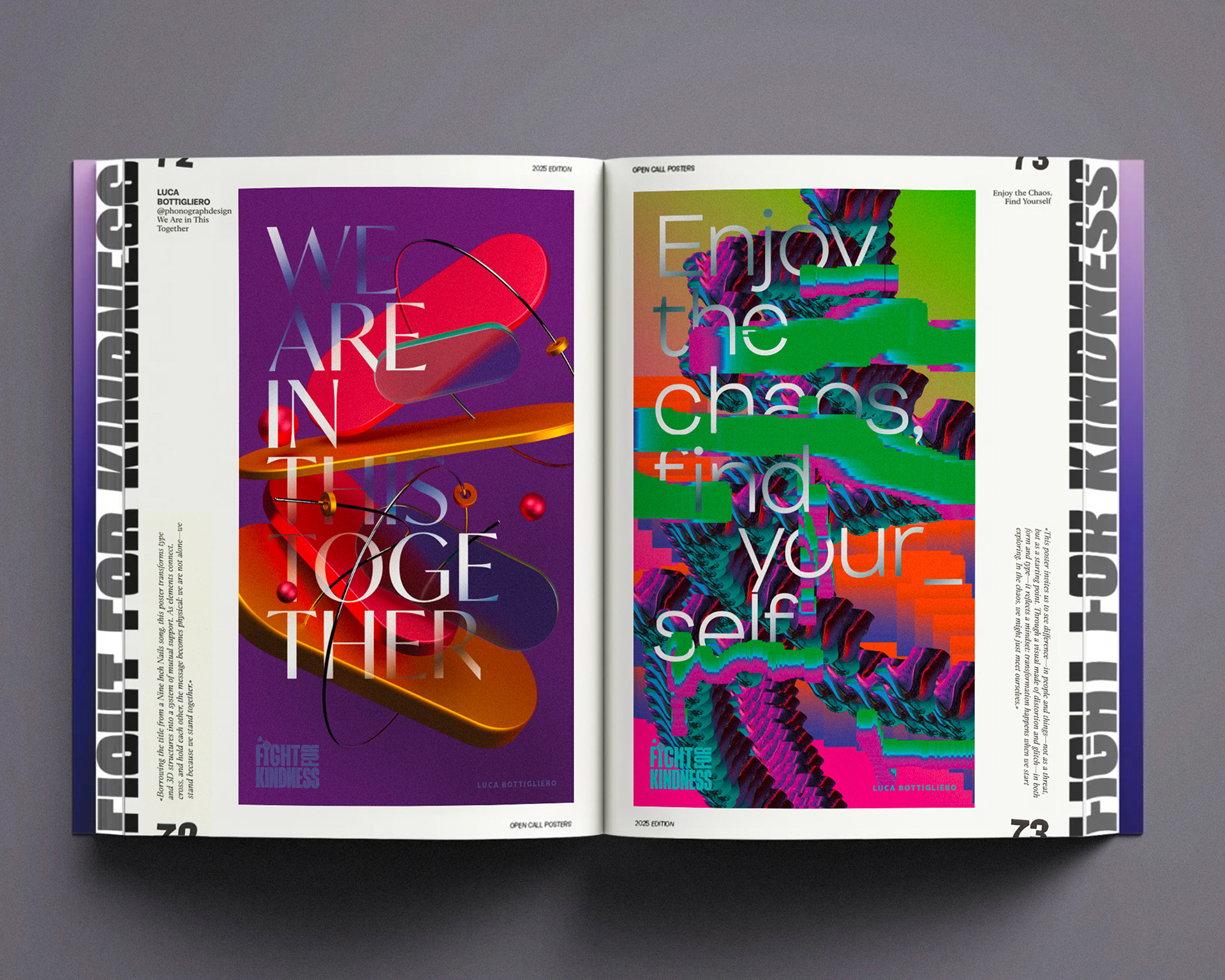 Visual Voices for Change. Global typographic posters to Fight for Kindness. This publication represents the fourth annual edition of the global Fight for Kindness initiative — a movement that each year invites designers worldwide to explore empathy, inclusion, and human dignity, promoting a culture of kindness through typographic expression.